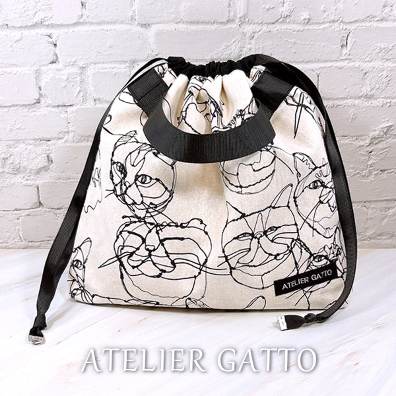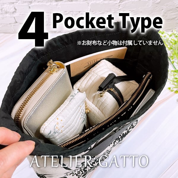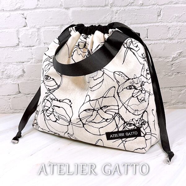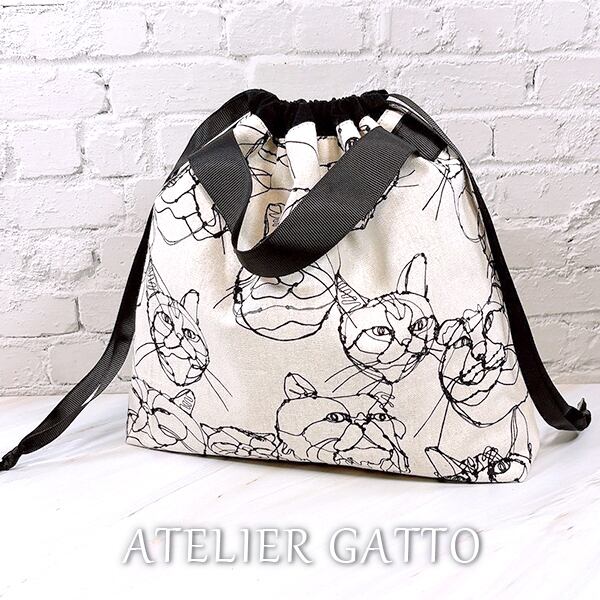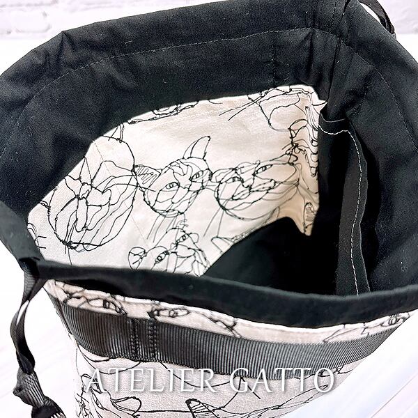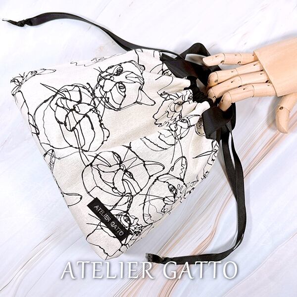 巾着型バッグインバッグ【ワイヤー猫】