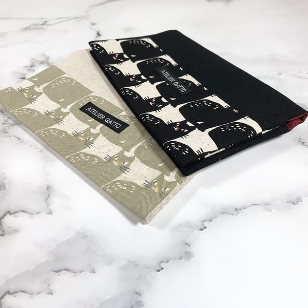 目が合うようで合わないちょっとシュールな表情の猫柄です。